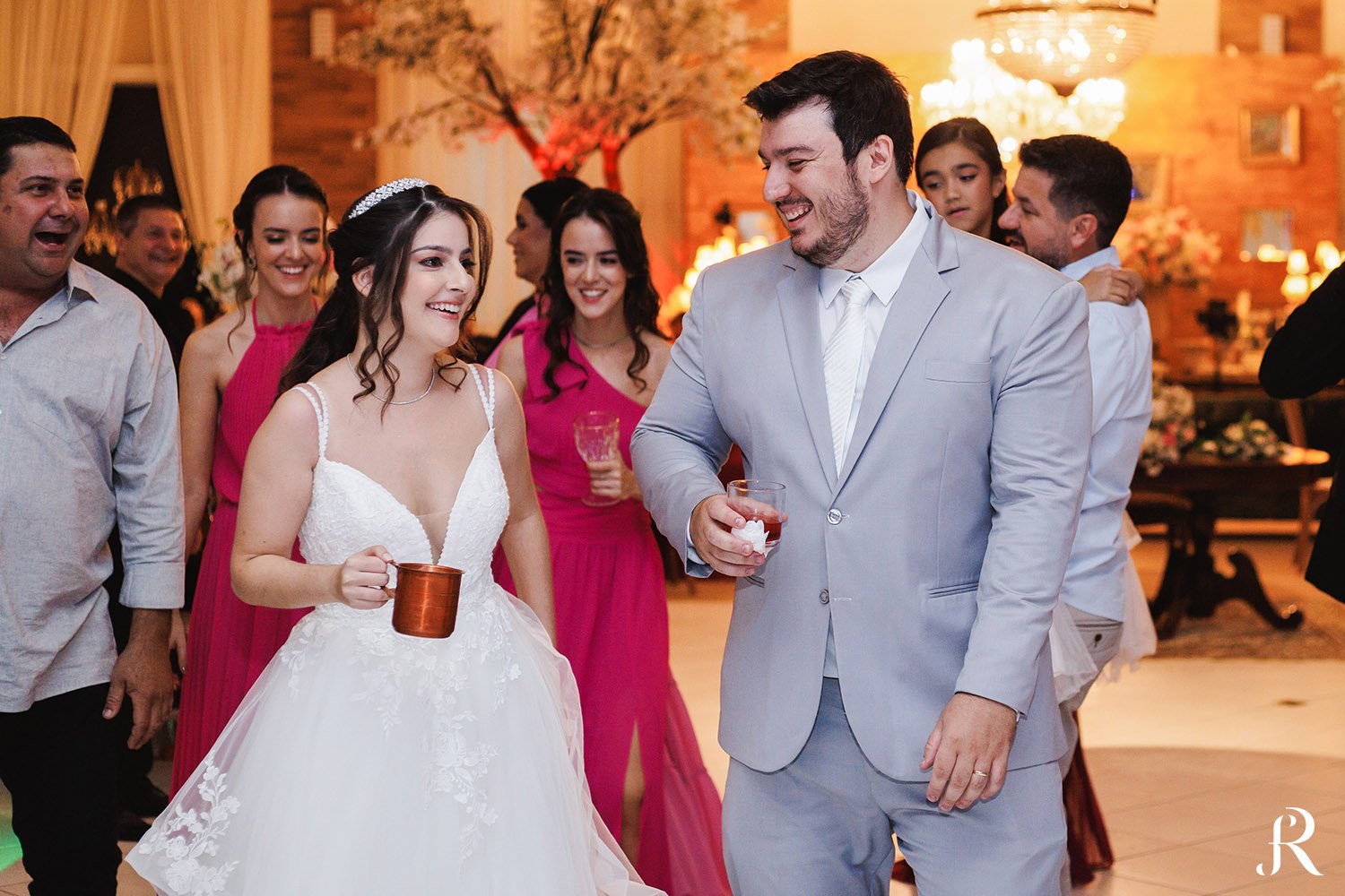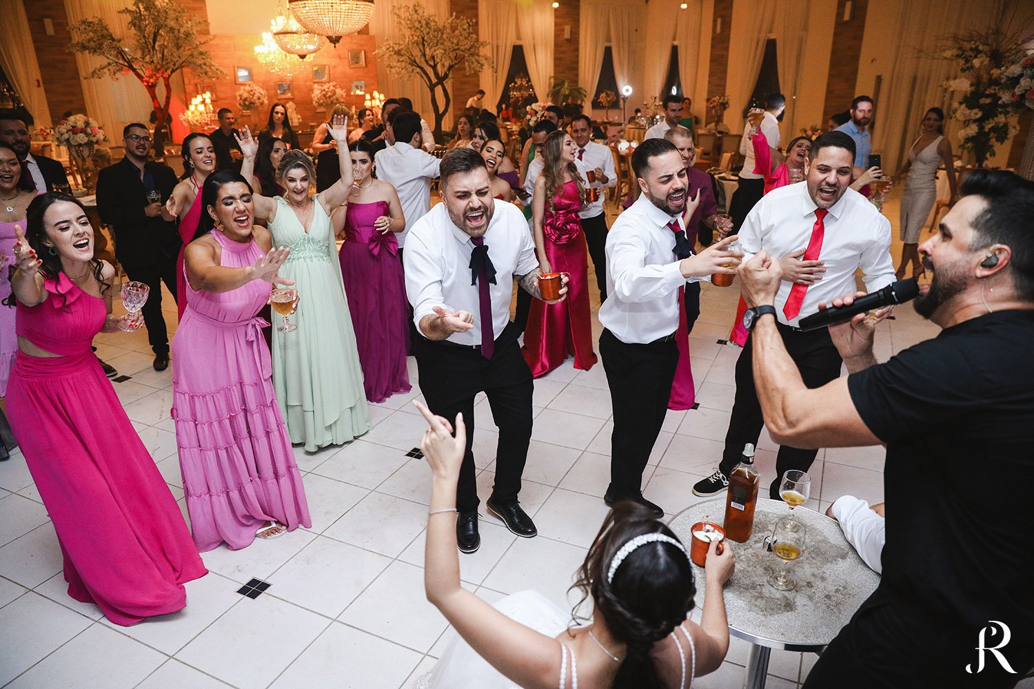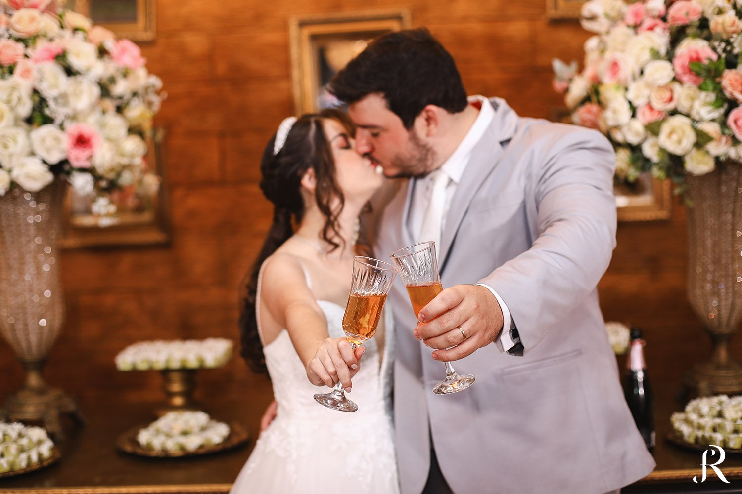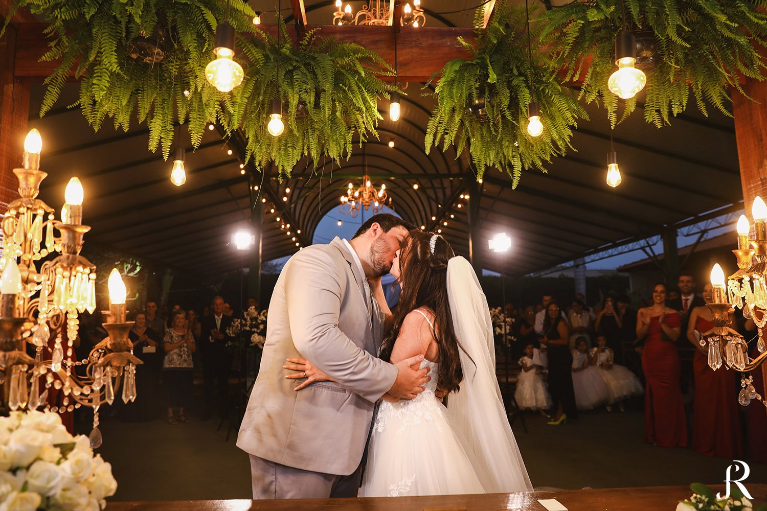 Após a cerimônia, os convidados seguiram para o salão, onde aconteceu a recepção. O ambiente foi preparado com muito cuidado para proporcionar conforto e alegria a todos. Entre brindes, abraços e muita animação, a festa seguiu com energia contagiante, celebrando o início de uma nova etapa na vida dos noivos.