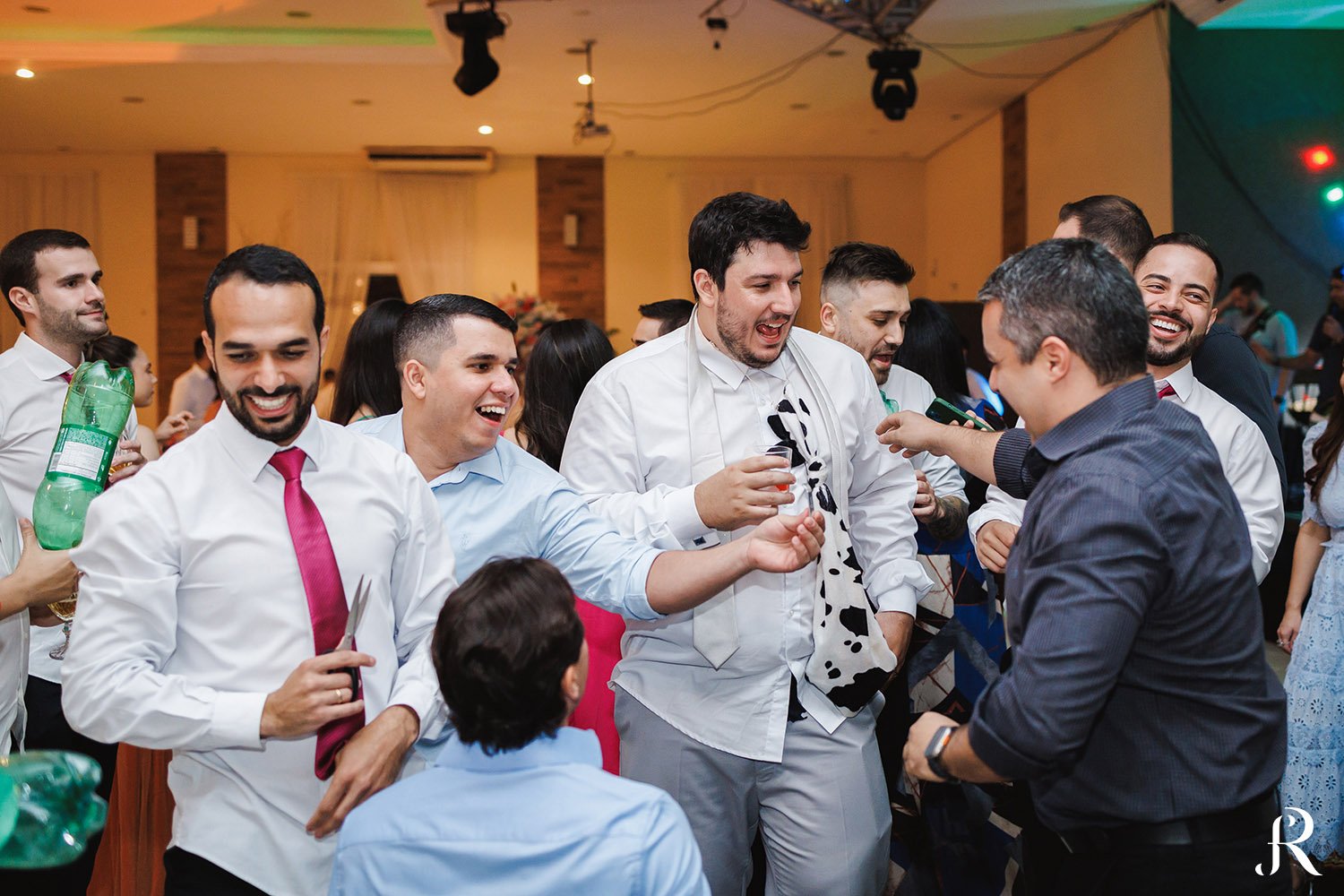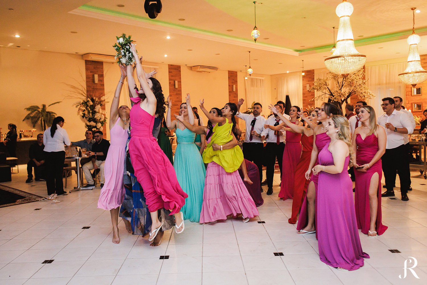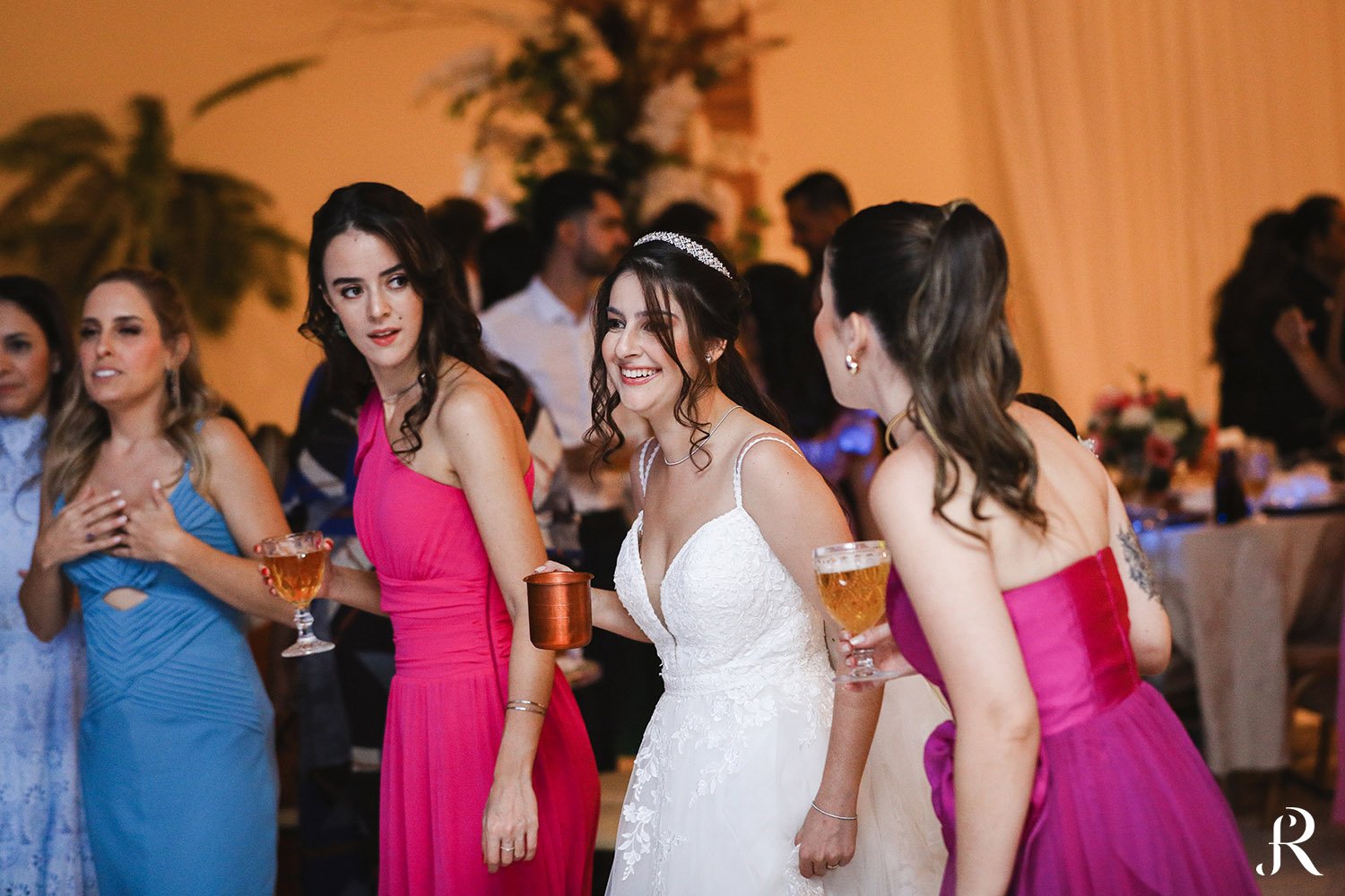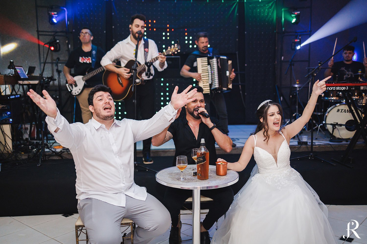 Após a cerimônia, os convidados seguiram para o salão, onde aconteceu a recepção. O ambiente foi preparado com muito cuidado para proporcionar conforto e alegria a todos. Entre brindes, abraços e muita animação, a festa seguiu com energia contagiante, celebrando o início de uma nova etapa na vida dos noivos.