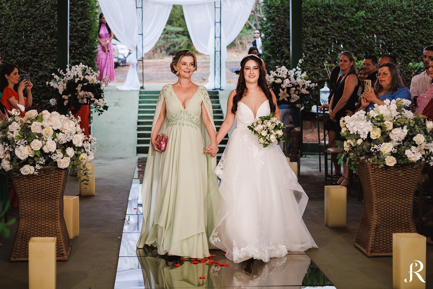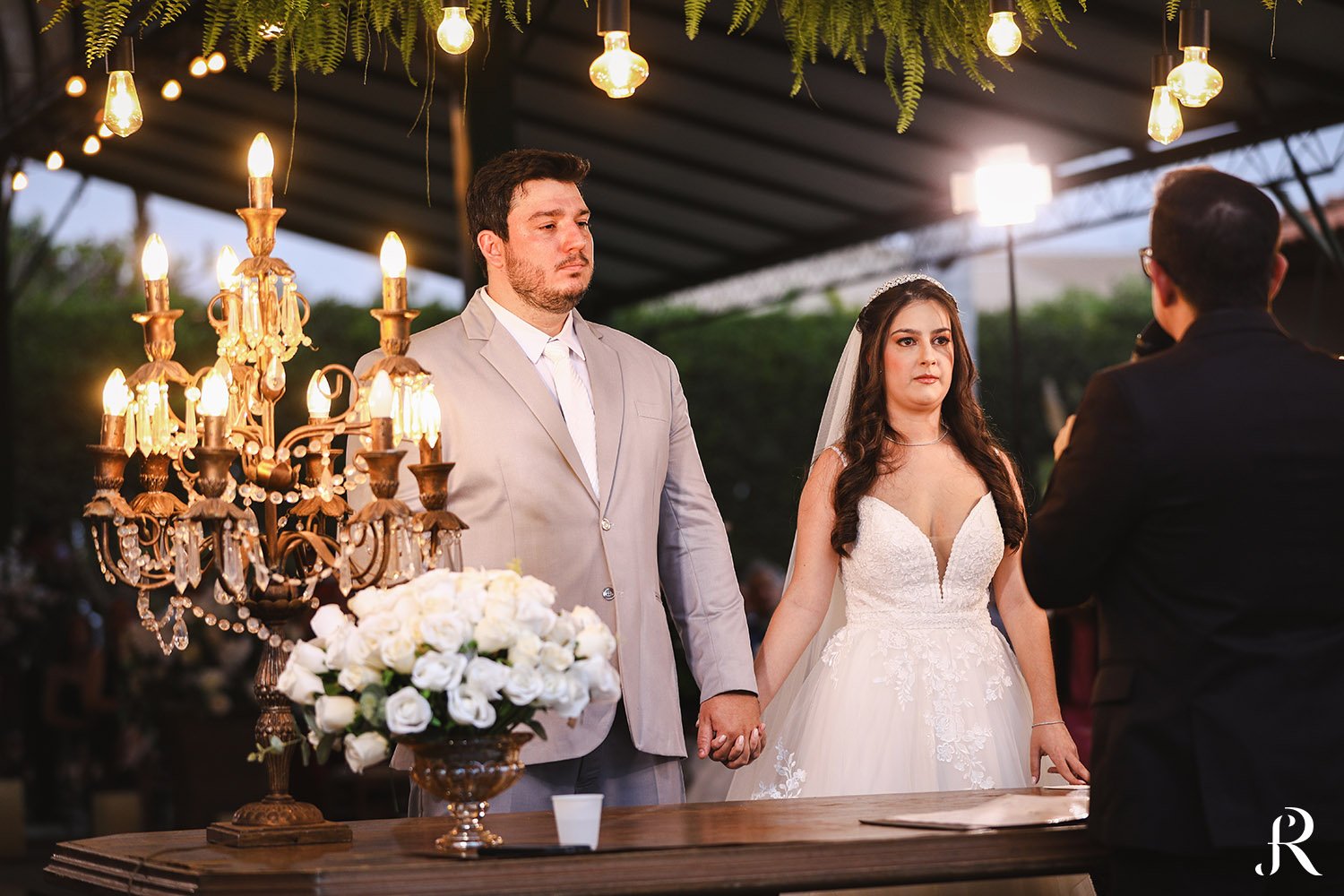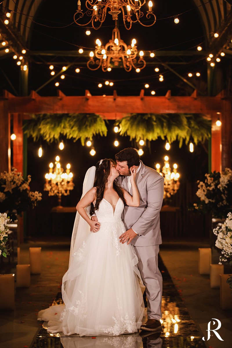 A cerimônia aconteceu na área externa do espaço, em um cenário encantador e cheio de charme. Ao ar livre, cercados por uma decoração delicada, Isabella e Vinicius trocaram votos de amor em um momento emocionante, repleto de significado e carinho. Cada detalhe contribuiu para tornar a celebração ainda mais especial.