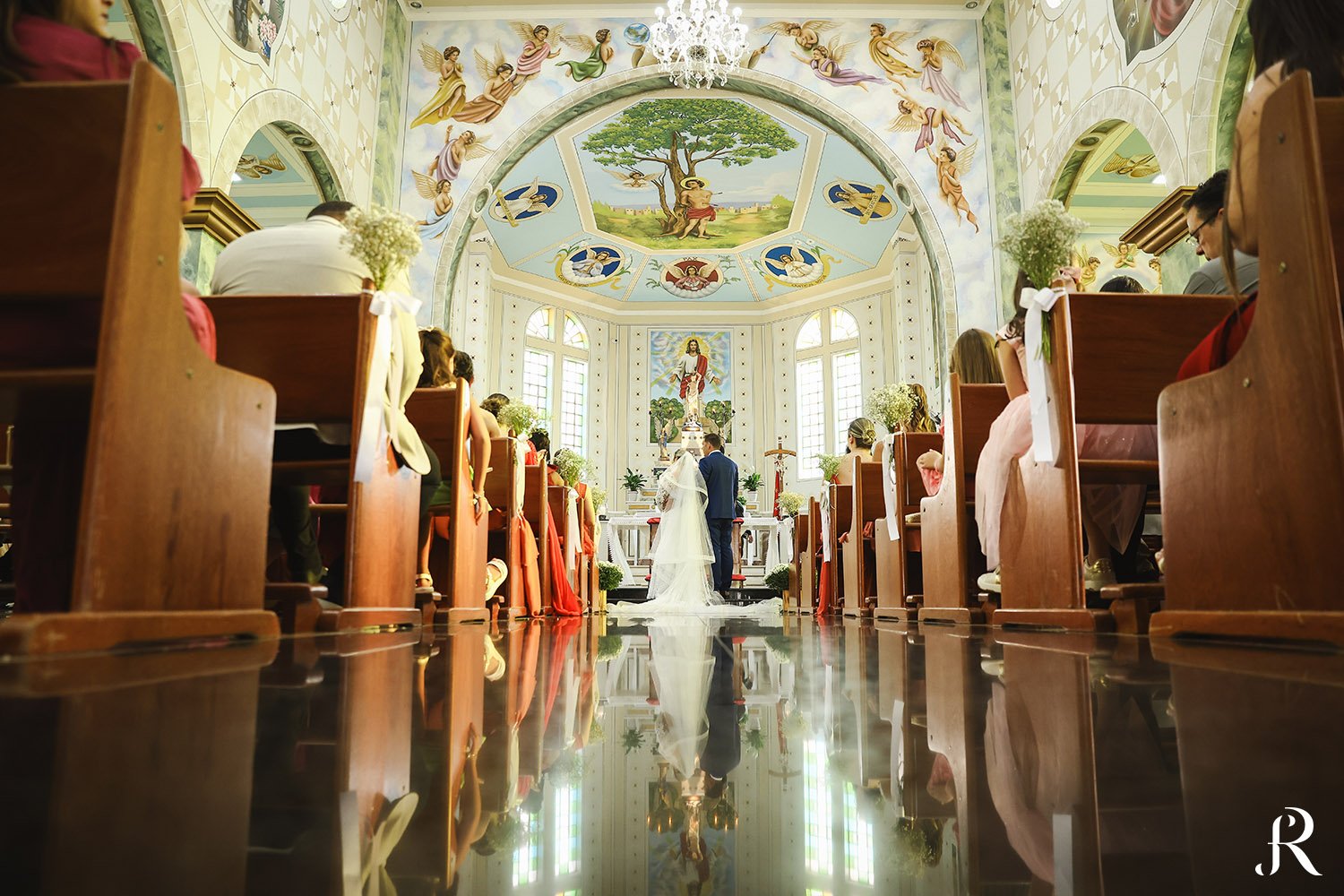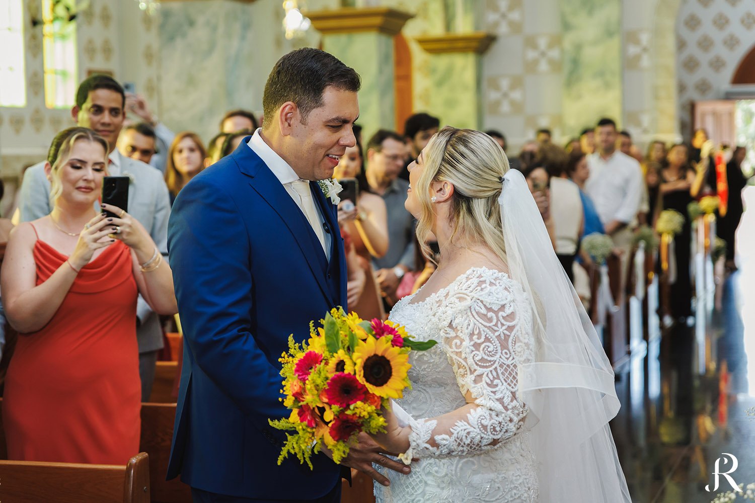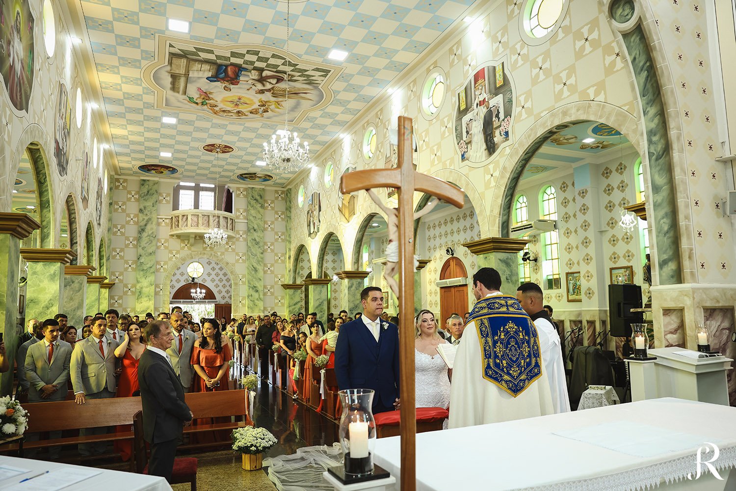 A cerimônia aconteceu na tradicional Igreja Matriz de Guapiaçu, um cenário que por si só já carrega emoção, história e beleza. Cada detalhe — desde a entrada da noiva até o olhar emocionado do noivo — compôs uma narrativa intensa e verdadeira. Foi impossível não se envolver com a atmosfera de amor que preenchia o espaço, tornando cada instante ainda mais especial.
