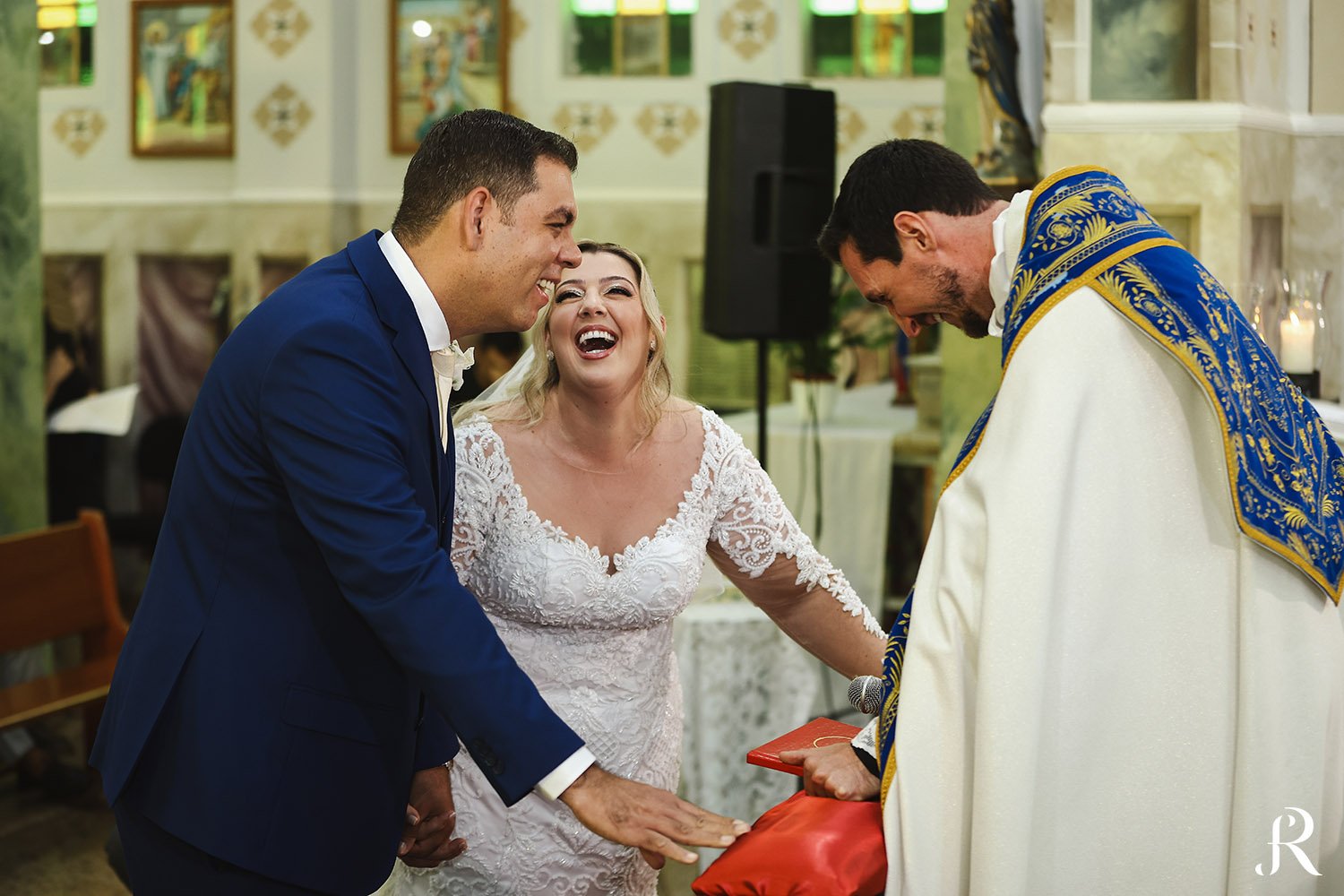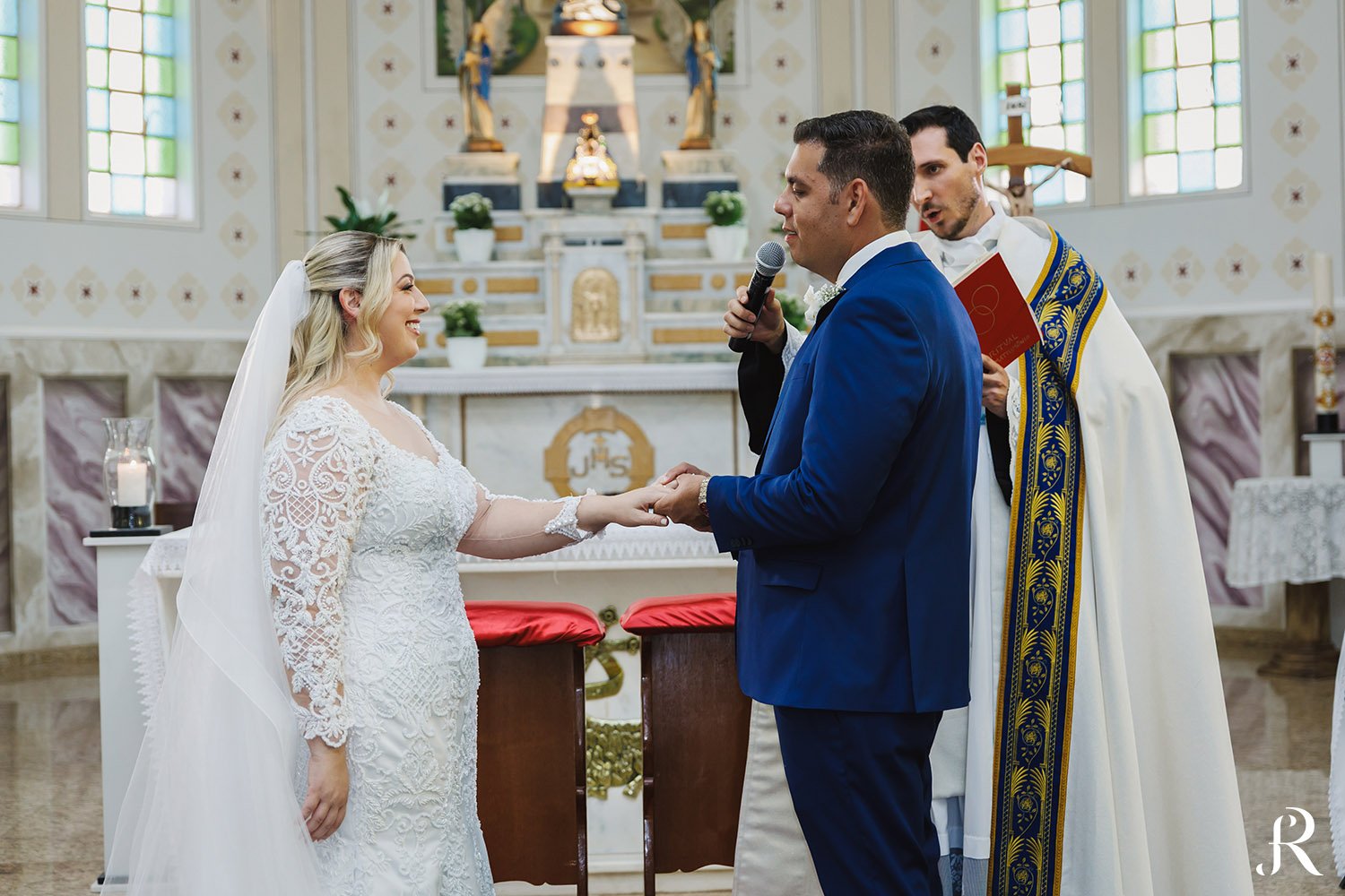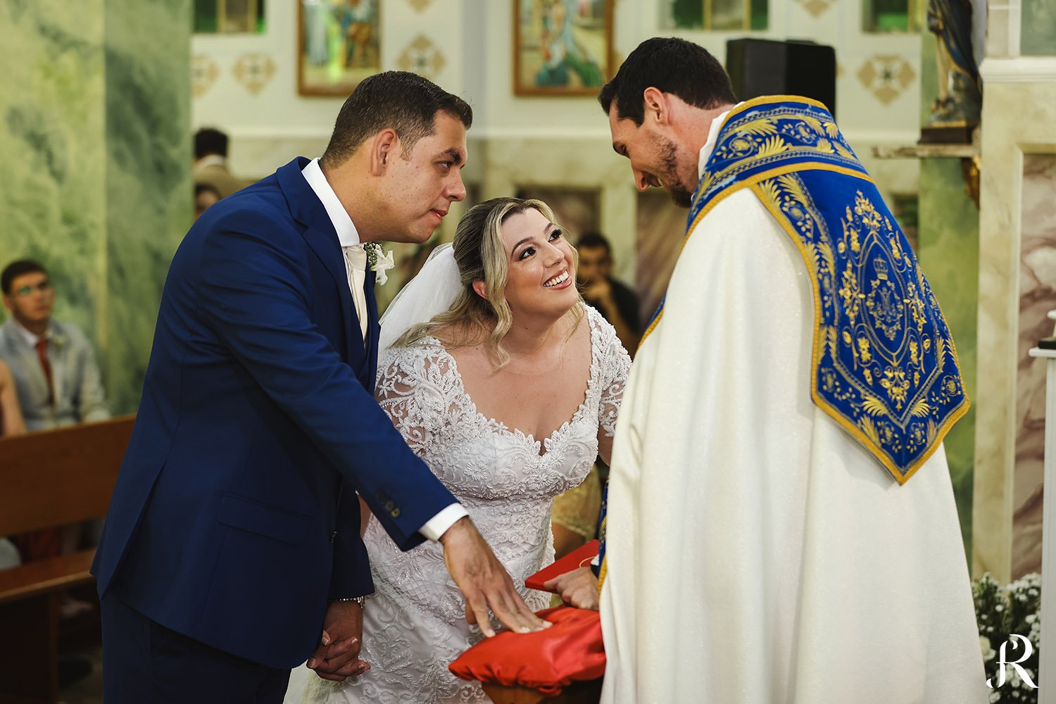 A cerimônia aconteceu na tradicional Igreja Matriz de Guapiaçu, um cenário que por si só já carrega emoção, história e beleza. Cada detalhe — desde a entrada da noiva até o olhar emocionado do noivo — compôs uma narrativa intensa e verdadeira. Foi impossível não se envolver com a atmosfera de amor que preenchia o espaço, tornando cada instante ainda mais especial.